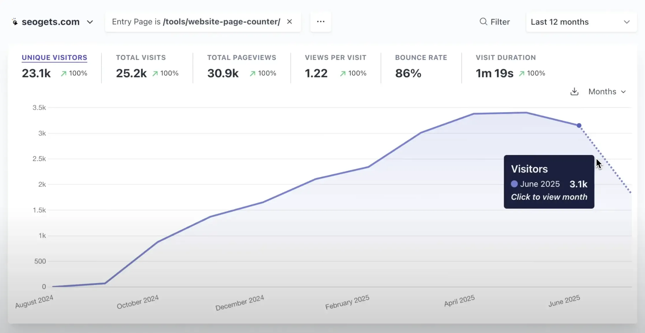 We had 3,100 visitors to this specific page in June alone. That’s what all the SEO celebration was about. This one page driving most of our “success.”