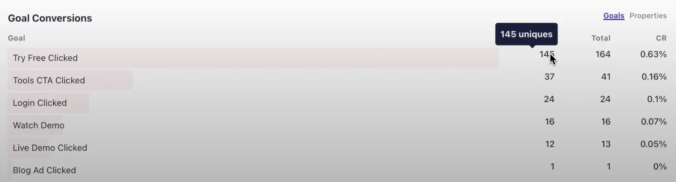 We had 145 people click our “try free” button, which seemed like decent engagement for a free tool.