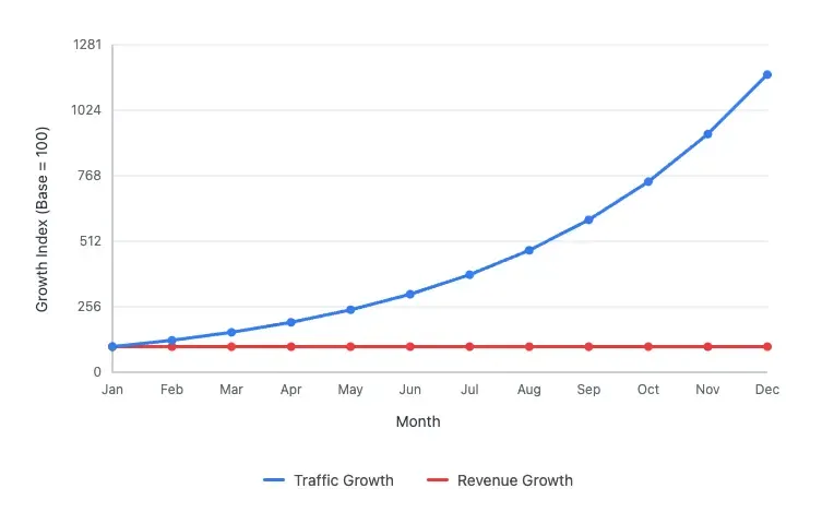 Because at the end of the day, “traffic up and to the right” means nothing if revenue stays flat.