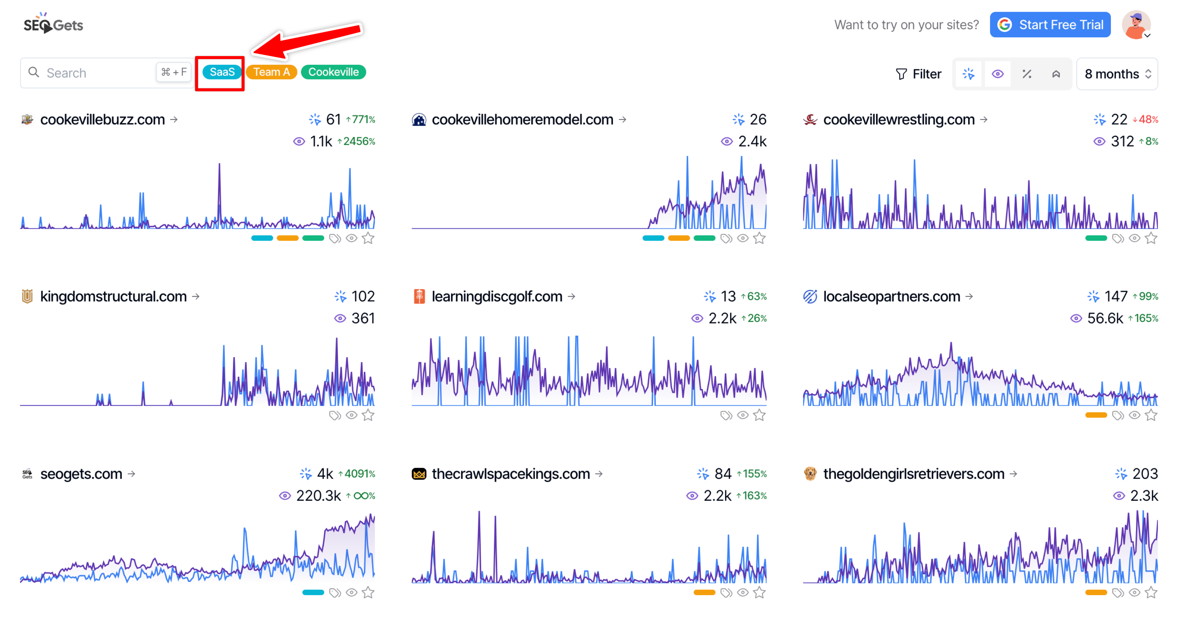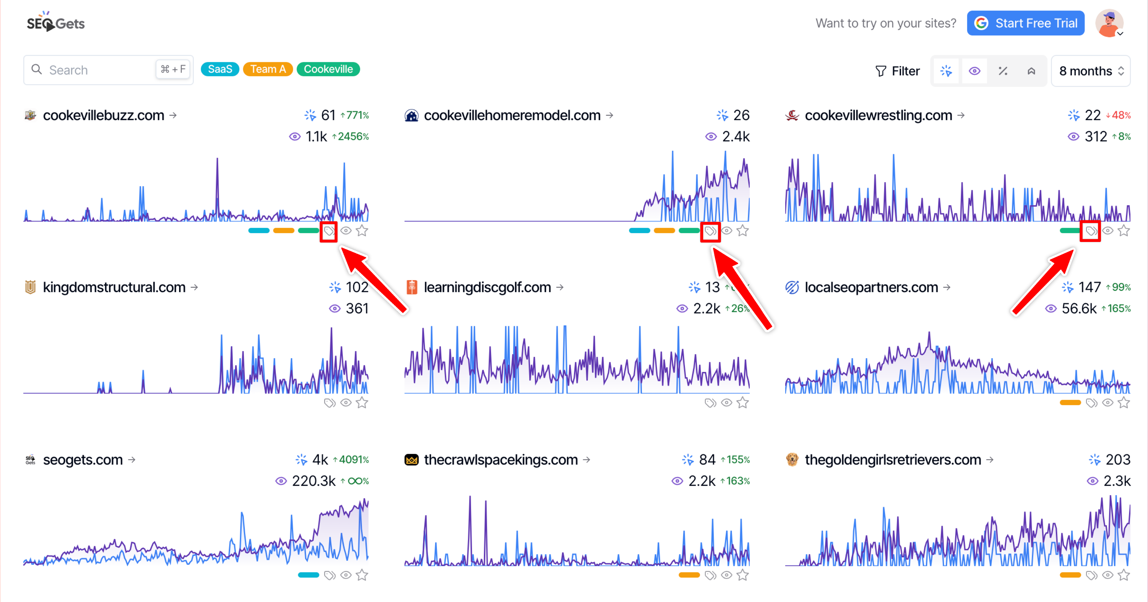Easy organization: Tags allow users to group sites by categories like “Active clients”, website types (e.g., Ecommerce, Local), or any custom classification.
